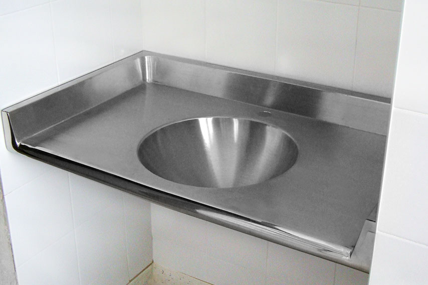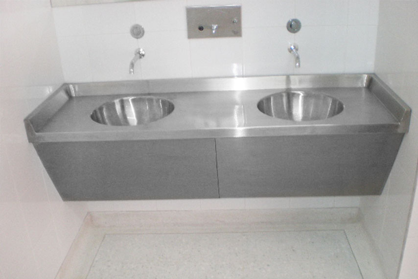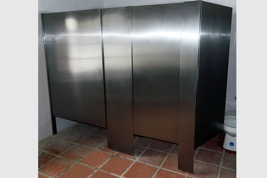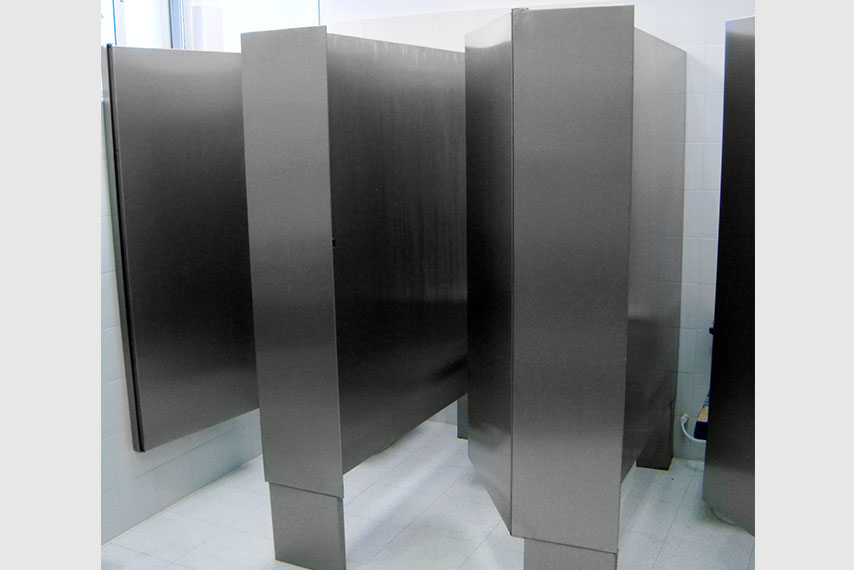 Divisiones de baño, lavamanos, sanitarios, barras de seguridad para minusválidos, duchas antivandálicas, portapapel, dispensadores de jabón, papeleras, etc.